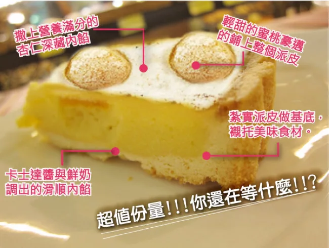 博客來e-coupon [台灣好食光] 派夢地─杏仁蜜桃派 (1入)